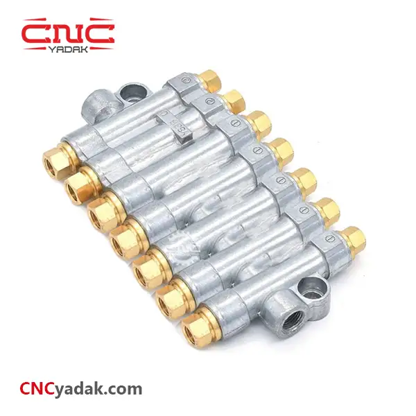 این محصول که مشاهده میکنید مقسم روغن کاری نام دارد که جهت روانکاری اتوماتیک به یک مخزن روغن متصل شده و ماننده یک چند راهی روغن را به بخش های مختلف دستگاه انتقال میدهد و این قابلیت را دارد که میزان فشار هر خروجی قابل تنظیم باشد.این مدل از تقسیم روغن ها دارای سوپاپ می باشند که جهت بالا بردن فشار پاشش روغن و جلوگیری از بازگشت روغن به مخزن اصلی میگردد.